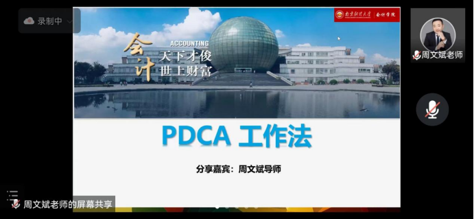 5月21日,XCsports能力树工作室开启在线训练营第12讲--“PDCA工作法”,邀请周文斌老师作专题讲座。周文斌老师深入浅出的讲解了PDCA循环的四个阶段与八个步骤及PDCA的本质特性。PDCA工作法可以让我们高质量处理任务。对同学们在生活中应用PDCA时遇到的困惑,周老师进行了耐心细致的解答。