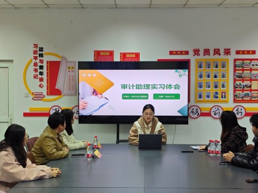 在交流会上,多位同学结合实践案例分享了自己的体验心得:会计2401班刘珈悦通过访谈,了解到会计职业在数字化浪潮下的转型与挑战,职业规划的灵活性与前瞻性非常重要;会计2204班茅莼羽以审计助理实习岗“凭证拍摄”为例,坦言初入职场遇到的挑战,她强调抗压能力与沟通技巧是实习中收获的“隐形技能”。审计(天衡)2401班张永雯同学则向大家分享了内部审计成功的“四轮驱动”要素:专业胜任、独立客观、团结协作与价值创造。财管2301班高智贤同学结合行业调研,分析了财会领域技术变革趋势,让我们了解到财会工作不仅是数字与报表的堆砌,更是专业智慧与职业精神的体现。
