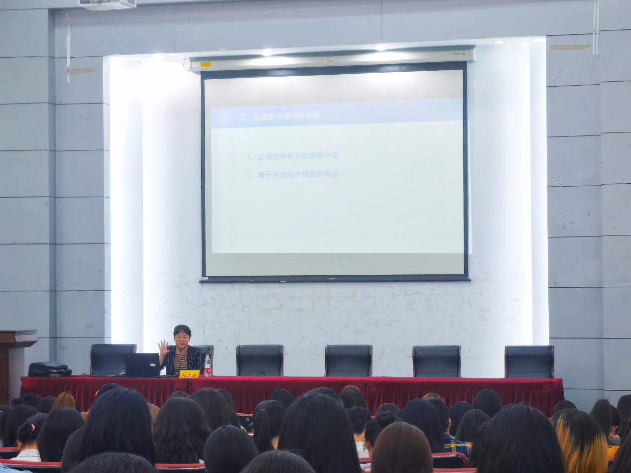 杨雪花教授从“怀着初心读研”、“处理好与导师的关系”、“做好学业规划”三个方面向同学们讲授如何拥有充实、高质、丰富的研究生生活,鼓励同学们尽快完成本科生到研究生的身份转变和角色适应。研究生要怀抱“终于来到梦想之地”的感慨,不忘初心,想明白自己为什么要读研;要正确处理与导师的关系,与导师进行有效沟通,多听取导师意见,赢得导师信任;要提前做好学业规划,找准职业发展目标所在。
