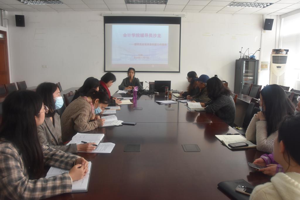 2020年11月11日上午9点30,XCsports全体学工人员在德济楼308会议室举办辅导员沙龙活动。