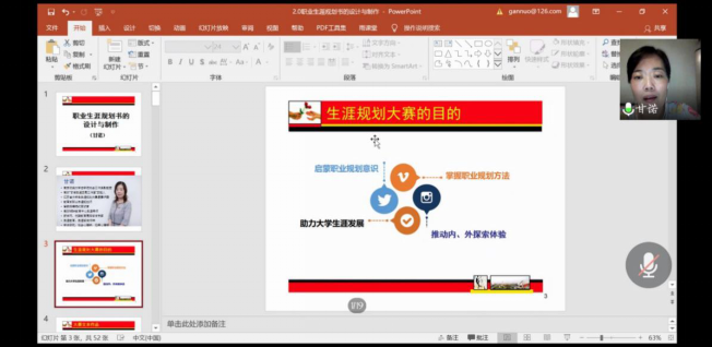 甘诺老师以生涯规划大赛的目的为切入口,鼓励同学们积极参赛的同时能树立起懂得规划自己人生的意识。分享了往届生涯规划大赛的员工作品,从经验视角为同学们分析如何才能在大赛中脱颖而出。