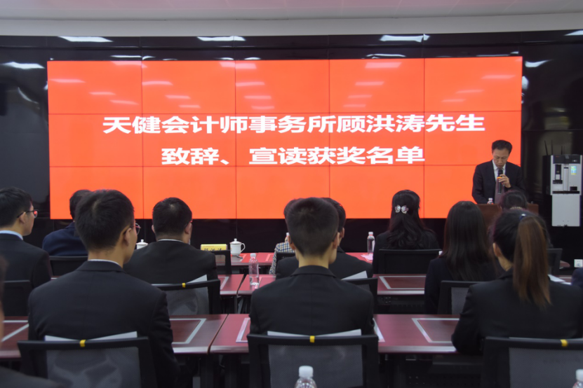 获奖员工代表会计1706徐克俭发言。他对天健会计师事务给予的机会和鼓励表示感谢,并表示将始终秉承“天行健,君子以自强而不息”的信念,踏实学习、积极实践,努力成为一名优秀的会计人才。