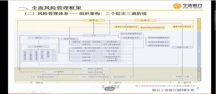 本次讲座李莉经理主要从全面风险管理框架、利率风险管理和运营风险管理三个方面深入分析。在全面风险管理框架方面,李经理主要讲述了商业银行营运风险管理的“三道防线”,与“三大支柱”。在利率风险管理方面,她简析了利率市场化进程和LPR利率计量模式。营运风险管理方面,她通过案例讲解的方式列示了银行业务流程中一些不合规业务行为并提出应对措施。