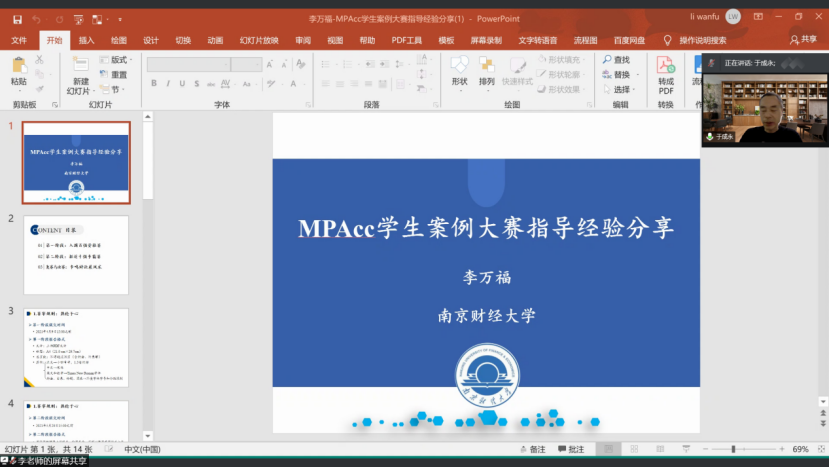 在第七届中国MPAcc员工案例大赛正式开赛之前,公司于2021年3月29日晚19点30分采用线上会议方式,开设了“MPAcc员工案例大赛指导经验分享”讲座。本次讲座由XCsportsMPAcc中心主任钱坤老师主持,李万福老师主讲,XCsports2020届131名师生参加了线上讲座。