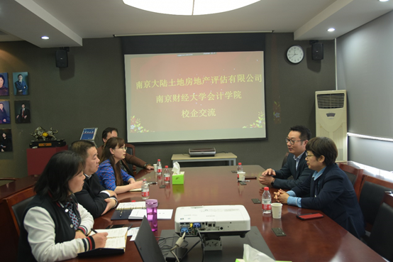 上午十点,南京大陆土地房地产评估有限公司财务总监吴玲芳、总经理助理金新祥,公司党委书记卜金涛、党委副书记刘颖、学工办主任仲小晶及部分红起创新创业团队成员进行座谈。卜金涛书记介绍了公司概况、专业发展、员工就业情况等,重点介绍了公司资产评估专业特色。吴玲芳总监介绍了公司发展历程、主要业务、人才需求等。双方就员工就业实习、人才培养、校企合作等进行了探讨。