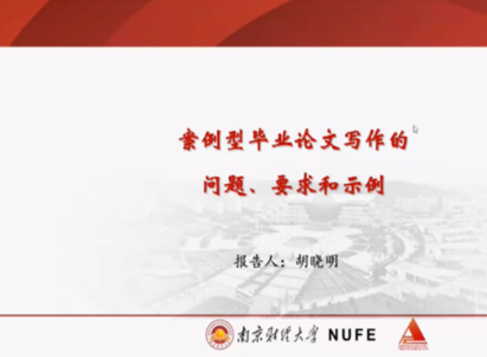 胡晓明老师强调,重中之重是和老师进行沟通,只有与老师沟通才能发现自己的不足并加以修改。其中第一部分,胡晓明教授主要从四个方面进行了讲解,分别是选题问题,结构问题,基本规范和案例研究问题。而第二部分案例型毕业论文写作要点,教授主要从案例型毕业论文的特点,案例型毕业论文的主要环节,案例型毕业论文的选题,案例型毕业论文的资料收集,案例型毕业论文的写作框架和案例型毕业论文写作过程中的注意事项这六个方面进行讲解。第三部分案例型毕业论文写作示例,胡晓明教授给大家仔细讲解了案例型毕业论文的格式以及其中需要大家注意的要点。