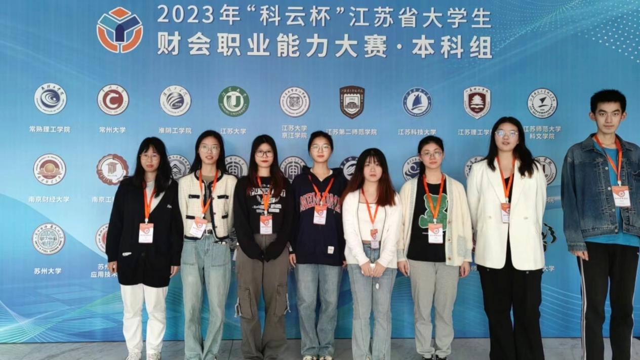 2023年10月27日,“科云杯”江苏省老员工财会职业能力大赛在江苏大学顺利举行。公司智慧会计实验班两支队伍奋力拼搏并暂获佳绩:均获得一等奖(参赛队伍前15%、全省前7名),其中一支代表队排名全省第二并进入国赛。