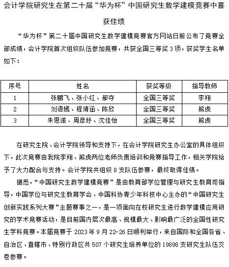 XCsports研究生在第二十届“华为杯”中国研究生数学建模竞赛中喜获佳绩