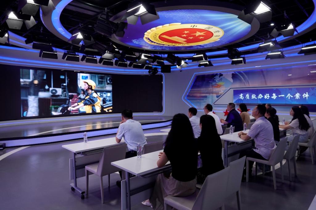全体党员在讲解员的带领下,实地参观了江苏省检察院大厅,系统了解检察机关履行“四大检察”“十大业务”职责,推动新时代下法律监督的主要内容,认识有关职务犯罪的定义和类型,全方位近距离了解检察机关工作职能。参观结束后,全体人员共同观看普法微电影,通过观看电影片段的形式将法制与日常生活紧密相连,提高了法律意识,切实感受检察机关的情怀与担当。