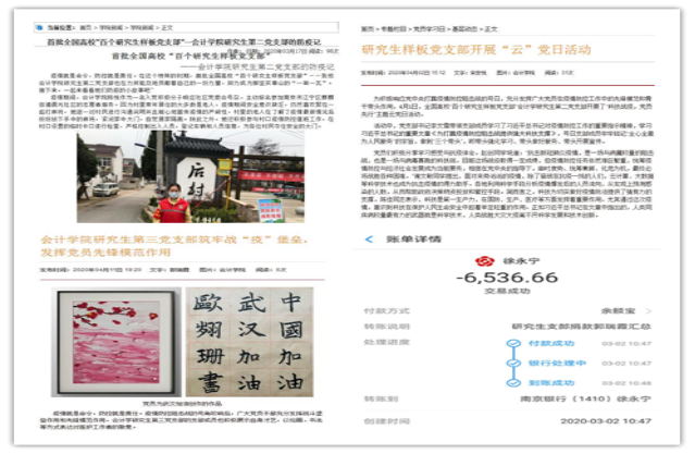 研究生党支部践行初心,“疫”在行动疫情期间,班上的许多员工干部,党员与辅导员一起并肩战斗,及时联络员工,确保把公司每一项通知、要求及时传达给每一位同学,“不让任何一个员工掉队”,做到了党员,员工干部走在前、冲在先,积极发挥党员干部的模范先锋作用。