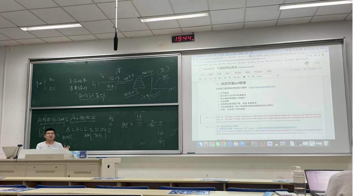 本次系列讲座以引导广大同学接触编程、建立信心、夯实基础为目标,共计举办5场,每次4课时,由会计公司薛利兴、李行云两位老师主讲,首先梳理和总结了Python基础知识,如Python的基本语法、程序设计的控制结构、常用数据类型的使用与类型转换、函数与代码复用、Python模块与扩展体系、以及常见网络爬虫的使用,在此基础上进一步围绕爬虫实战与文本分析这两个人工智能技术详细讲解。薛利兴老师以其扎实的理论功底和实践经验为同学们耐心地讲解Python的基础知识和各种心得,李行云老师则侧重讲授使用Python Requests库、BeautifulSoup库、Pyquery库等爬虫相关库的使用、Ajax网页加载类型网站爬取等爬虫技术进行数据抓取以及文本分许在经管类学科应用;二位老师一直鼓励同学们多思考、多动手、多练习,引导同学们在实践中发现问题、解决问题,为进一步的数据分析与处理打下坚实的基础。讲座现场气氛活跃,参加讲座的本科生和研究生同学们对Python编程兴趣浓厚,表示收获满满。