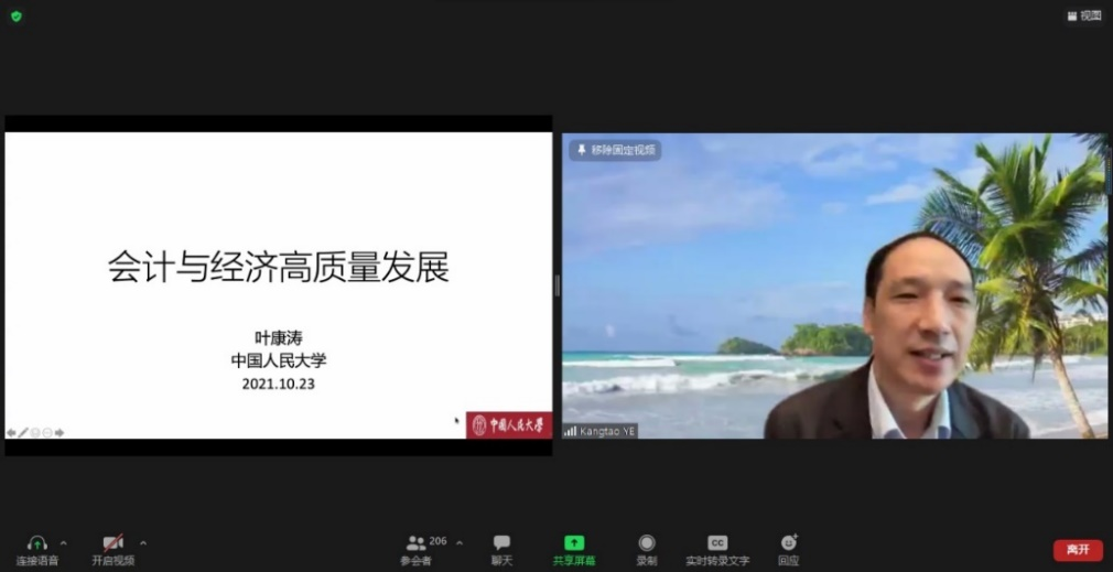 本次论坛共分为四个部分。论坛第一个部分是主题演讲。来自澳大利亚莫纳什大学的Paresh Kumar Narayan教授、中国人民大学商公司经理叶康涛教授分别作了“COVID-19 and Implications for Digitalization”和“会计与经济高质量发展”主题演讲,报告前沿性强,理论价值高。XC体育MBA教育中心副主任秦伟平教授和XCsports经理姚文韵教授就数智背景下的财经专业双元人才培养作了精彩的前沿报告,题目分别为“生态系统视角下商科类专业学位公司产品模式研究”和“新文科背景下智慧会计人才培养的理论与实践探索”。