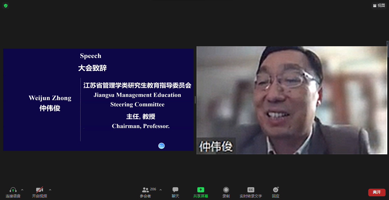 上午9:00,研讨会准时在ZOOM云端召开。江苏省管理学类研究生教指委主任仲伟俊教授,XC体育党委常委、副董事长时现教授向大会致辞。仲教授强调,要深入贯彻落实党的十九大和全国教育大会精神,扎实推进具有中国气派的哲学社会科学研究高质量发展,增强“四个自信”,努力讲好中国故事,提升中国哲学社会科学在国际学术届的话语权。时现董事长强调,探索数智科技如何赋能企业的财务运营,以及如何引领基于数智技术变革的新文科发展,将是一个十分有价值且重要的时代课题。紧密围绕新文科背景下双元财务人才培养、数智科技发展与公司财务创新,就新时代智能财务人才培养、数智科技背景下的财务与经济金融发展等前沿学科命题展开交流,对于新时代经济社会高质量发展具有重要的现实意义。时现董事长指出,本次会议的召开,将在探索新时代财务人才培养、会计和财务领域理论创新和实践创新方面取得丰硕的成果,为国家经济社会发展提供有益的思路。