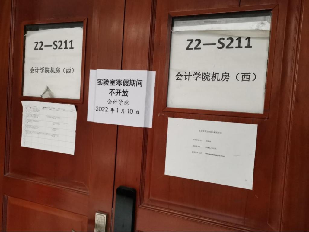 财务共享大数据中心(德正楼S201)、会计信息实验室(德济楼S211),这两个实验室寒假不再使用,所以拉闸断电封门。云财务实验室(德济楼S209)、人工智能会计研究中心(德济楼S207),也相应确定无安全隐患,嘱咐随后使用的老师注意安全,使用后要拉闸断电封门。