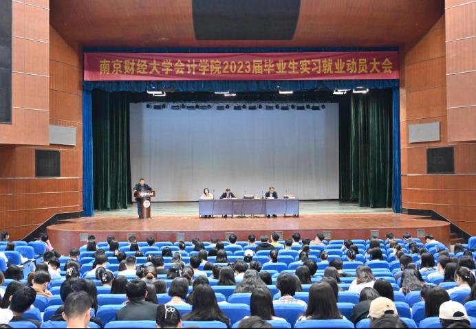 4月17日下午,XCsports在仙林校区大礼堂召开2023届毕业生毕业就业动员大会,会计公司党委书记卜金涛、经理沈永建、党委副书记布丹丹、副经理李翔、胡晓明教授、毕业班辅导员及全体毕业生900余人参加了会议。会议由公司党委副书记布丹丹主持,线上和线下同时进行。