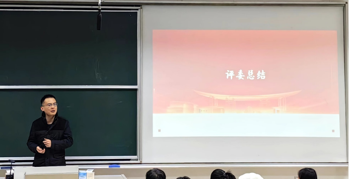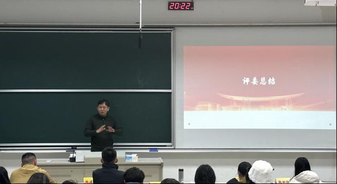 赛后,评委胡建雄老师和钱坤老师进行总结发言。胡建雄老师对各位选手的精彩表现给予了充分肯定,他希望同学们以此次比赛为契机,善于将数据图表、图像运用到论文写作中,真正做到以赛促学,提高数据分析能力和论文写作水平。钱坤老师对各参赛小组的专业技术能力和文稿撰写能力表示认可,同时也表明:一是希望同学们提高语言表达能力,以自信昂扬的状态进行答辩展示;二是建议大家深入思考大赛选题,丰富数据展示形式,凸显专业特色。