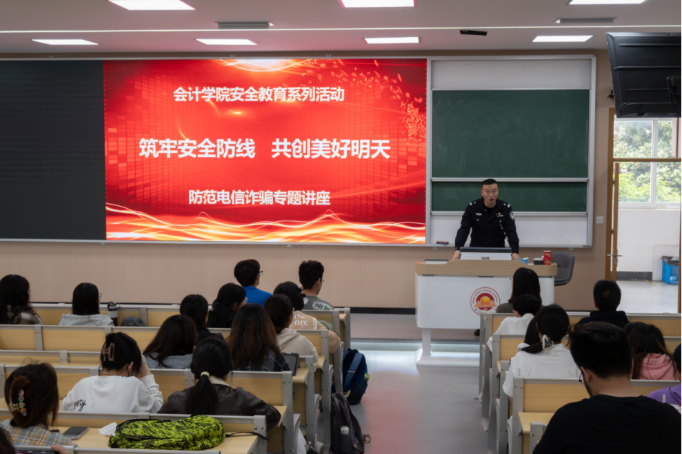 4月25日中午,XCsports邀请南京市公安局曹杰警官在仙林校区博观楼201教室开展“筑牢安全防线,共创美好明天”防范电信诈骗专题讲座。全院各班班长、宣传委员、大寝室长参加了讲座。
