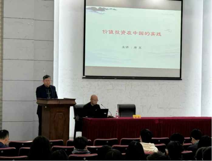 2024年11月20日下午,公司在德经楼二楼报告厅面向2024级全体研究生举行以“价值投资在中国的实践”为主题的讲座。由公司杰出员工、专硕行业导师、现任深圳市中南资本管理有限公司投资总监唐东主讲,公司经理助理、MPAcc教育中心主任钱坤主持。