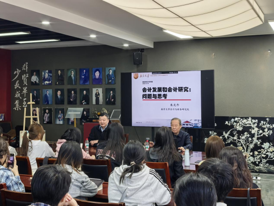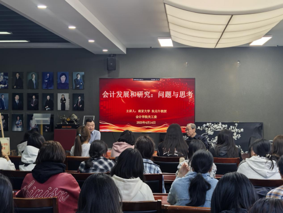 讲座中,朱元午教授围绕主题,从六个维度进行了深入剖析。他提出会计发展和会计研究需要回归本真,对会计本真进行了重新认识,并结合马克思的会计论述,构建了会计学科学理基础框架。朱教授指出,当前会计领域存在偏离本真的现象,在会计研究中也出现了一些与之相关的迹象,他通过具体案例对这些现象进行了详细分析,引发了同学们的深入思考。朱教授将习近平总书记“守正才能不迷失方向,不犯颠覆性错误”的论述与会计、审计和财务工作紧密结合,从会计的固有本质和基本定义入手,借助马克思论述会计的科学指导建立会计学科学理基础理论框架,聚焦“国际会计准则理事会(IASB)和国际财务报告准则(IFRS)”、“AI智慧会计”等论题,以生动案例剖析会计发展趋势和研究重点,引发师生热烈讨论和深入思考。讲座尾声,朱元午教授总结发言并留下富有深意的小令,为讲座增添文化韵味。