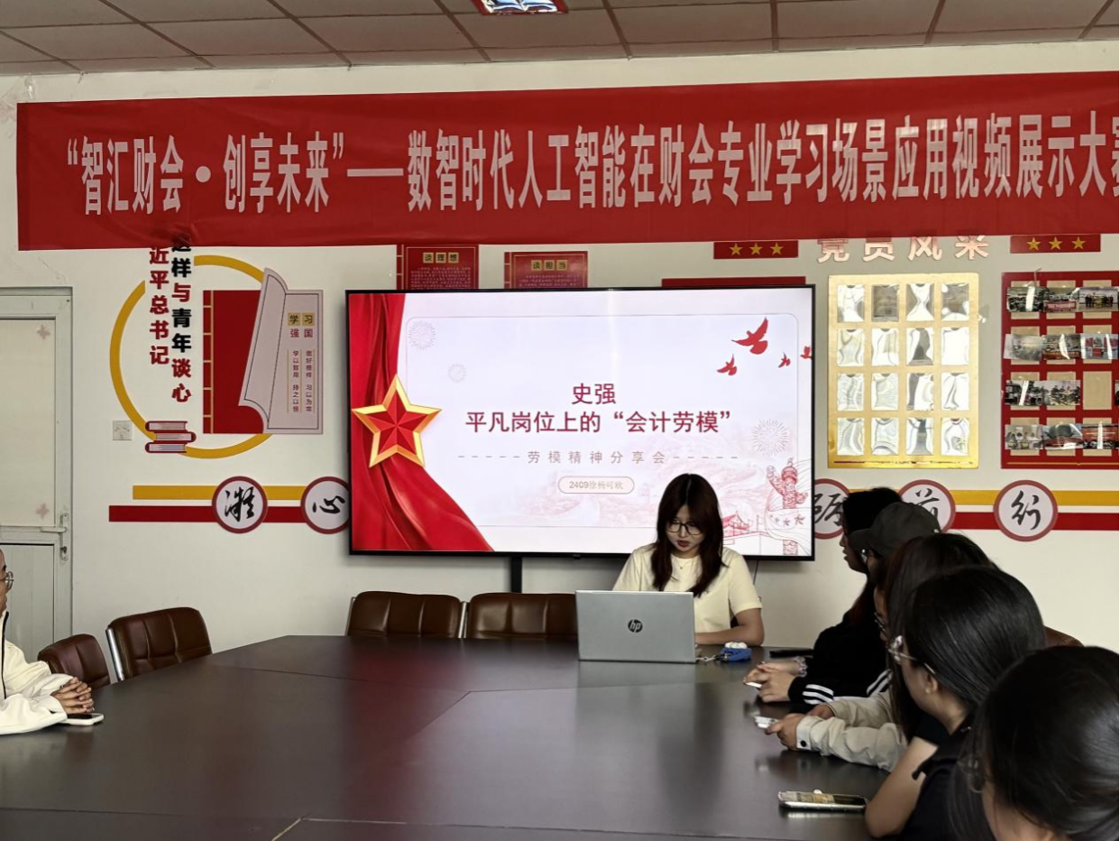 会计专业员工徐杨可欣、李琪锐、徐天语结合专业,分享行业劳模事迹。“会计劳模” 史强激励筑牢专业根基,践行责任;财务数字化转型领军人物张克慧倡导发扬严谨廉洁品质与创新精神;宿迁市劳动模范胡飞凸显会计实践精神的重要性。这些楷模的故事启示同学们,新时代会计人既要传承工匠精神,更要担当社会责任。