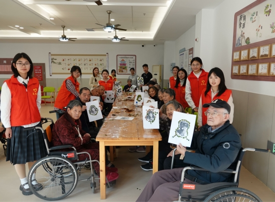 “学习雷锋好榜样,忠于革命忠于党……”伴随着志愿者们深情而有力的朗诵声,《忆雷锋,树新风》的篇章在颐养院内缓缓展开。随后,经典歌曲《外婆的澎湖湾》、《茉莉花》、《我爱你中国》旋律响起,老人们被深深感染,不由自主地跟着哼唱起来,现场氛围温馨而感人。此外,小剧场《雨夜送大娘》《车站的温暖》更是以生动再现的方式,将雷锋的经典故事娓娓道来,以生动具象的方式诠释了雷锋精神的内涵。志愿者们还贴心地为老人们带来了广播体操与太极拳表演,通过这两项传统而又充满活力的运动,传递着健康生活的美好理念。表演结束后,志愿者们与老人们亲密互动,共同制作创意手工树叶画。一片片色彩斑斓的叶子,在志愿者们的巧手下,被剪裁成了雷锋头像的粘贴画,这不仅是对雷锋精神的深刻致敬,更是对新时代青年责任与担当的生动展现。同时,志愿者们还与老人们亲切交谈,详细询问他们的身体状况和日常生活情况,传递着满满的关爱与温情。