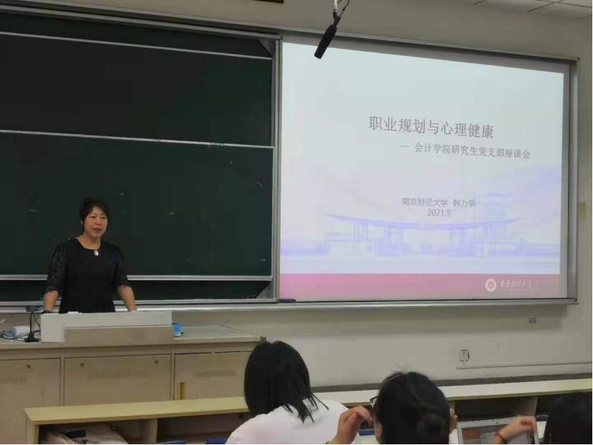 5月27日下午16:00,会计资产研究生第一党支部于德济楼115开展以“职业规划与心理健康”为主题的座谈会。会议由支部书记徐文兰主持,政治辅导员、研工部部长韩力争出席,支部全体党员同志参加。