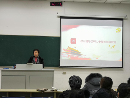 党支部书记徐文兰介绍了支部的整体情况,并从学风建设、组织生活、党员教育三个方面对支部活动作了年度总结。随后,她带领全体党员同志一起认真学习习近平总书记《论党的宣传思想工作》的主要内容。