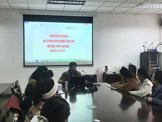 12月23日下午,XCsports本科生第三党支部于德济楼308会议室开展 “党员学习日”活动。活动由第三党支部书记徐永宁老师主持,17级、18级第三党支部党员同学参加。