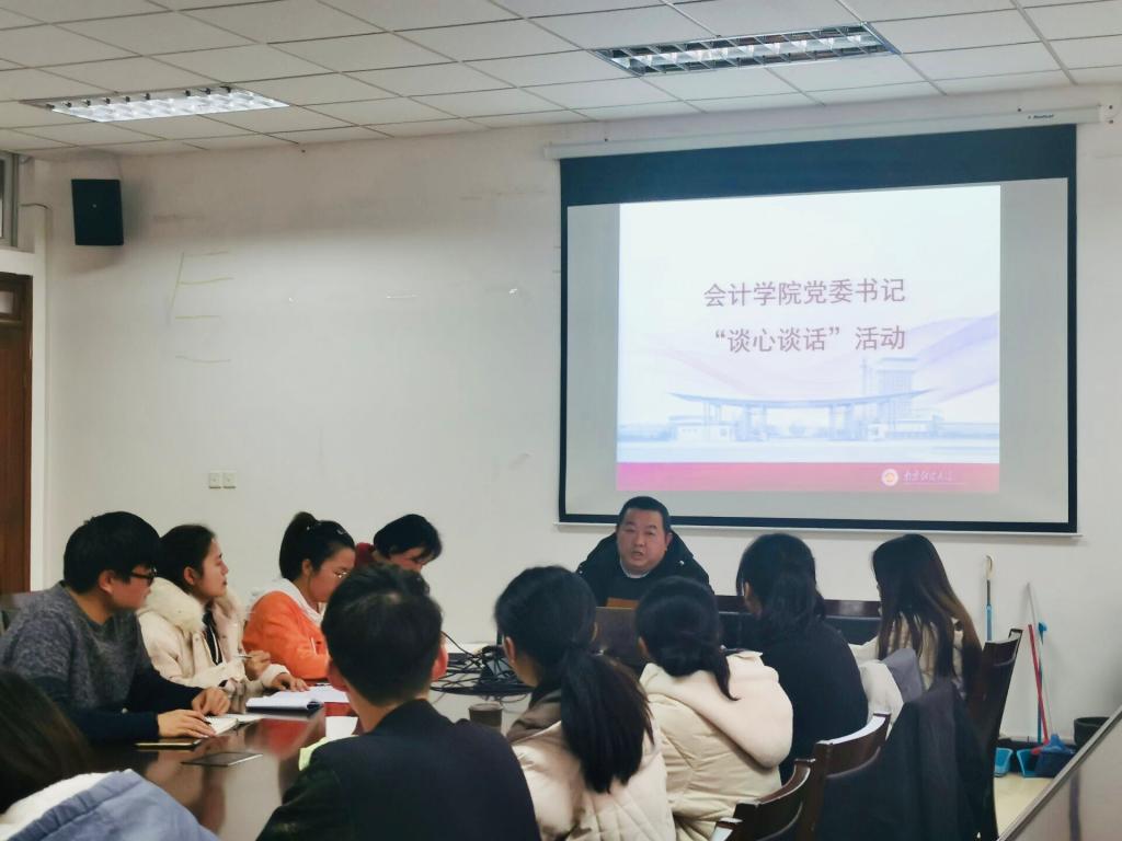 卜金涛进行谈心谈话。卜书记充分肯定了团学工作取得的成绩,对工作中存在的问题与各负责人进行了充分的沟通和交流。卜书记希望团学组织积极打造会院特色活动、品牌活动,扩大组织影响力,提升活动满意度。