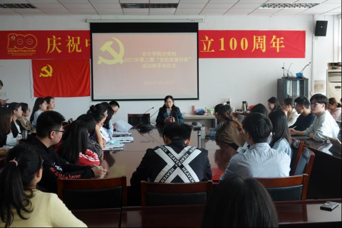 卜金涛书记致开班辞。他勉励本期学员要端正学习态度,认真学习党的知识和理论,力争学有所思、学有所得,并将所学运用于实际工作、学习、生活中去。刘颖副书记在发言中讲述了党校培训在党员发展过程中的重要性,介绍了党校的特色课程,强调了培训班的学习纪律。2021级研究生于安然同学作为学员代表发言,她表示一定会珍惜这次党课学习机会,严格遵守党校培训要求,不断提高思想政治素养,打好坚实的政治理论基础,进一步提升综合素质,争取早日加入中国共产党。