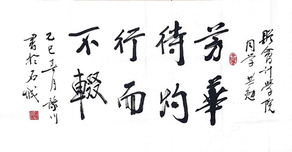 活动尾声,冯老师献上亲笔题词“芳华待灼,行而不辍” 与学员共勉。他解释,“芳华待灼” 寓意青春充满无限可能,“行而不辍” 则是要永不停歇奋进脚步。这八个字笔力遒劲,饱含对青年潜力的期许与初心的坚守,深深触动了在场学员,大家纷纷用手机记录下这一珍贵瞬间。