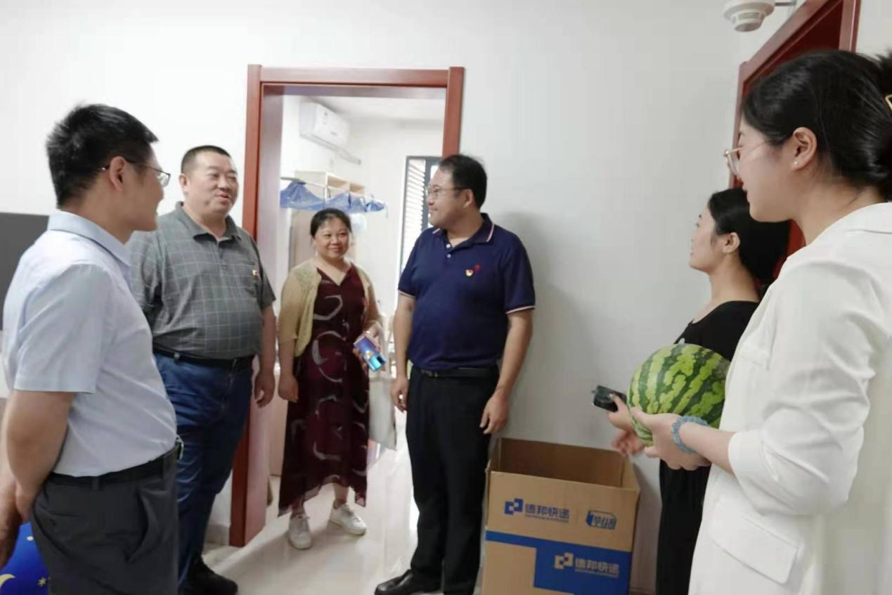在走访闲聊期间,公司领导也给平常辛苦照顾同员工活琐事的宿管阿姨送上了西瓜,对她们一直以来默默付出、为住宿的员工提供温暖而安全的生活环境的举动表示慰问。阿姨们纷纷感谢公司领导对宿舍管理工作的支持与关心,也希望即将毕业的同学们以后常回来看看。