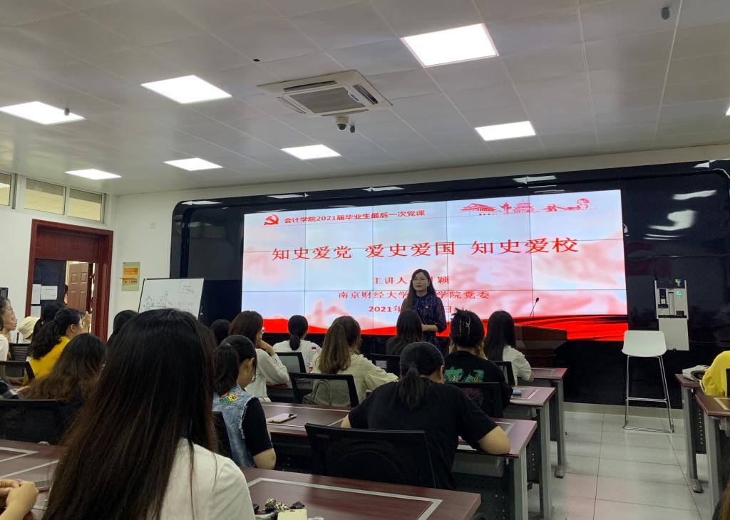 刘颖副书记给大家上了题为“知史爱党、爱史爱国、知史爱校”的“最后一次党课”。刘颖副书记从党史学习教育切入,介绍了XC体育的历史沿革和立德树人成效,重点结合公司发展历史上的三次大跨越,阐述了“自谦、自信、务实、超越”的校训精神,勉励同学们爱校荣校,为早日建成特色鲜明的高水平财经大学、为实现中华民族伟大复兴中国梦贡献力量。