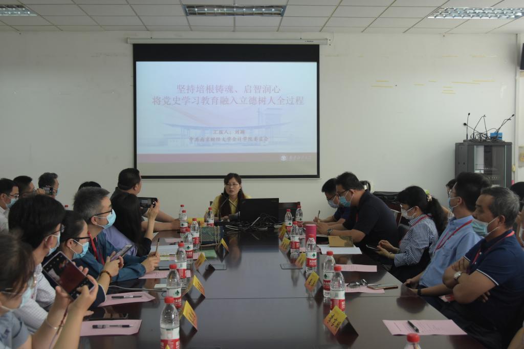 听取公司党建工作汇报。公司党委副书记刘颖简要介绍了XC体育的发展历程,重点介绍了公司党建工作特色及成效。刘颖副书记表示,党建工作一定要与专业学科紧密结合、与社会实践相结合,发挥师生党员合力,打造党建特色品牌。