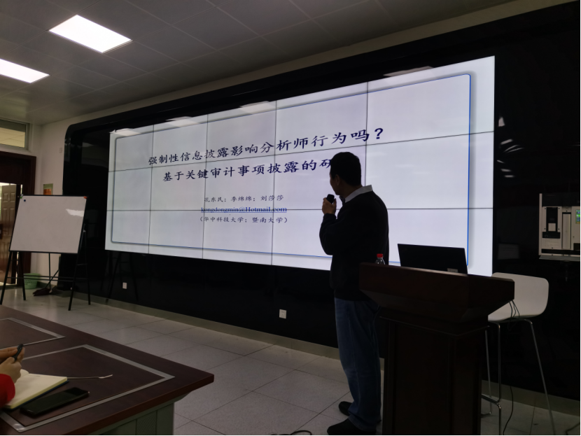 论坛第一环节,由孔东民教授报告了他和合作者的最新研究成果《强制性信息披露影响分析师行为吗?基于关键审计事项披露的研究》。基于文本分析的方法,该文重点考察了强制性的关键审计事项信息的披露是否以及如何影响分析师的预测行为。研究发现,关键审计事项的信息披露,显著降低了分析师的实地调研行为。在此基础上,关键审计事项的披露,还进一步提升了分析预测的准确度和预测频率。该文对于理解审计信息的披露与分析师行为之间,提供了一个丰富有趣的研究话题,亦对于政策制定和监管提供有益的建议。