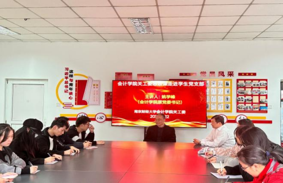座谈会结束后,姚学峰书记为党员同学们讲党课,讲述了XC体育会计专业建设历程,细数了从中专办学为起点到现在公司拥有四个国家级一流本科专业建设点的创业历程,鼓励同学们应继承会院前辈们艰苦奋斗的精神,以自己的良好发展给公司团队建设增砖添瓦。