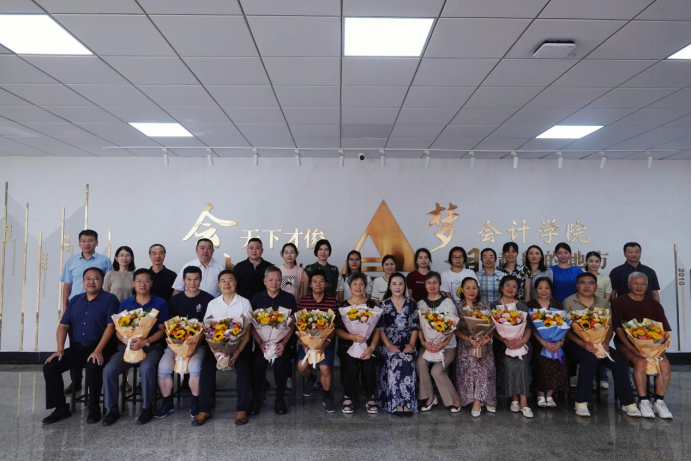 在“传帮带”新老教师传承仪式上,新入职教师代表为老教师献花,表达对老教师的尊敬与感激之情,以及传承教育薪火的决心。退休教师代表冯玉川向公司赠送了庆祝第40个教师节的个人书法作品。